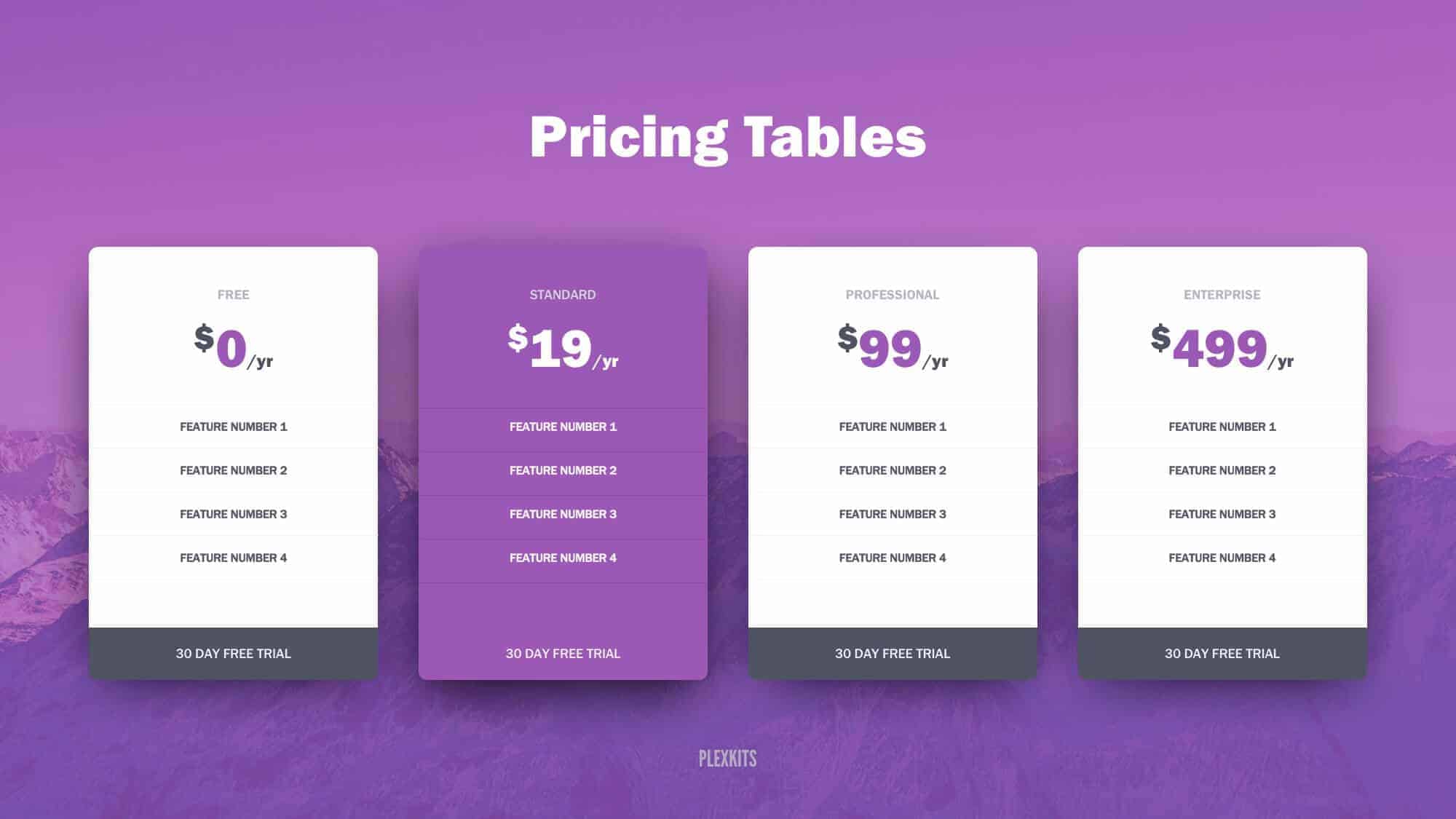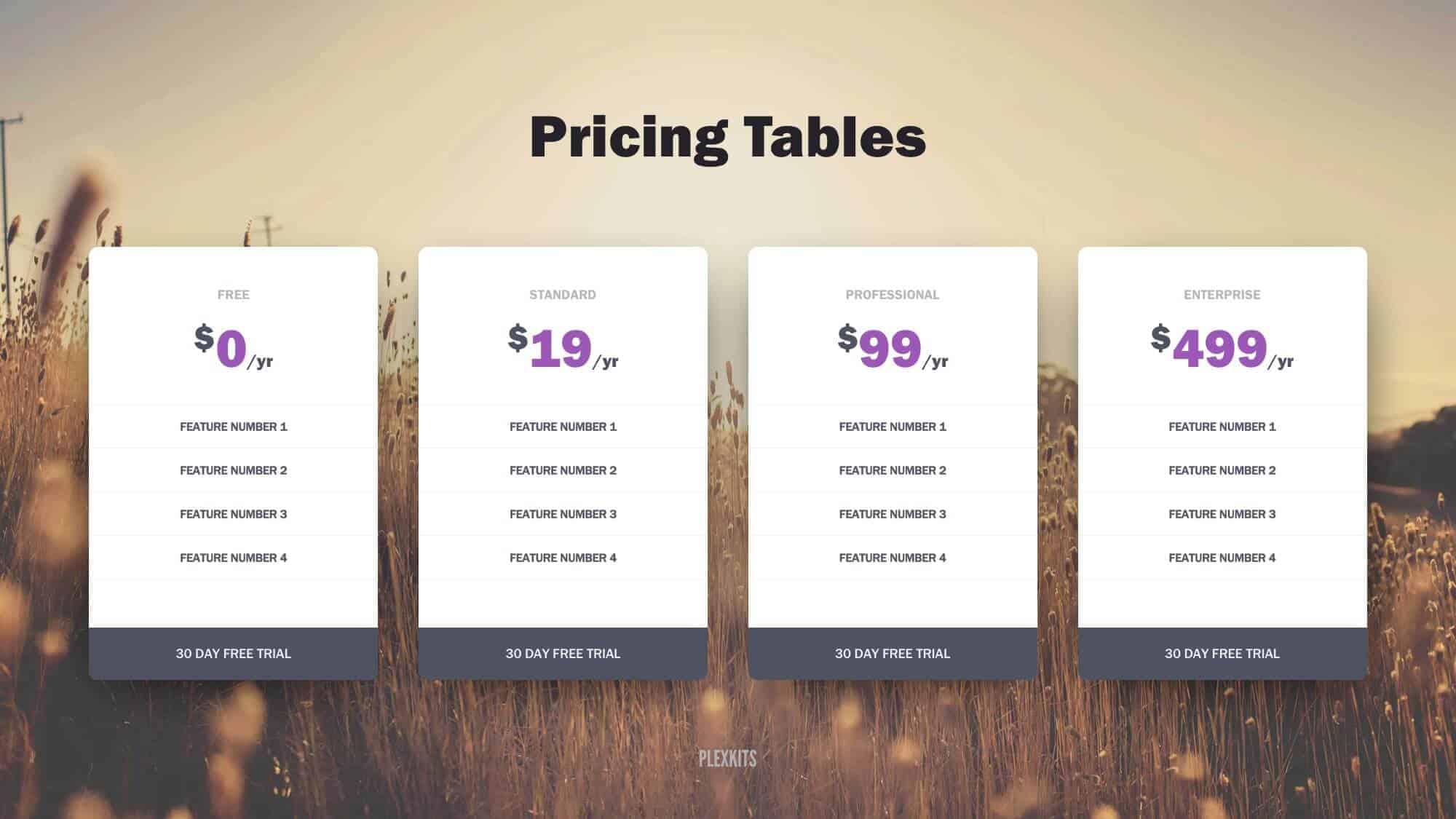 Every table, price, feature is completely editable. Change any of the PPT pricing tables to fit your products or comparisons.
